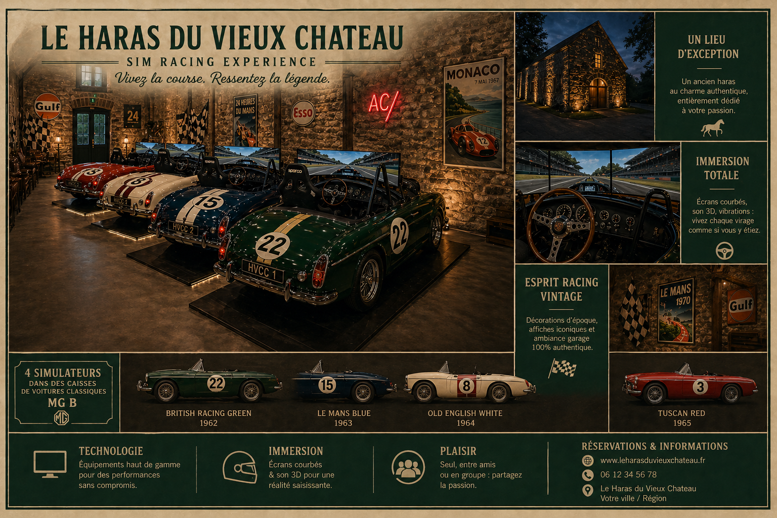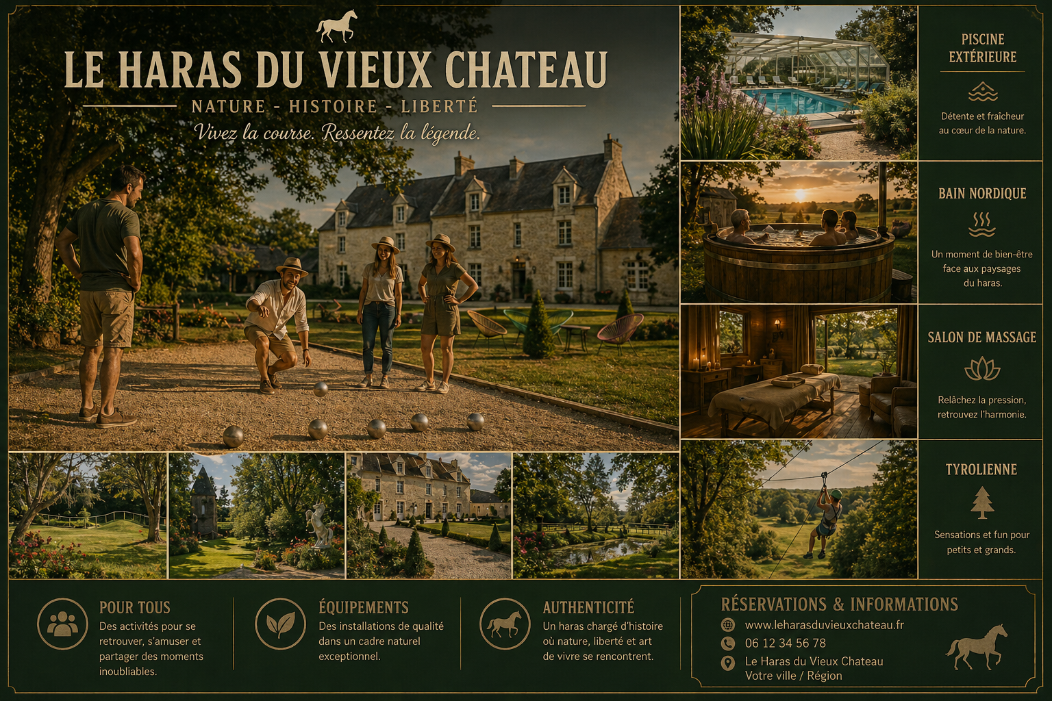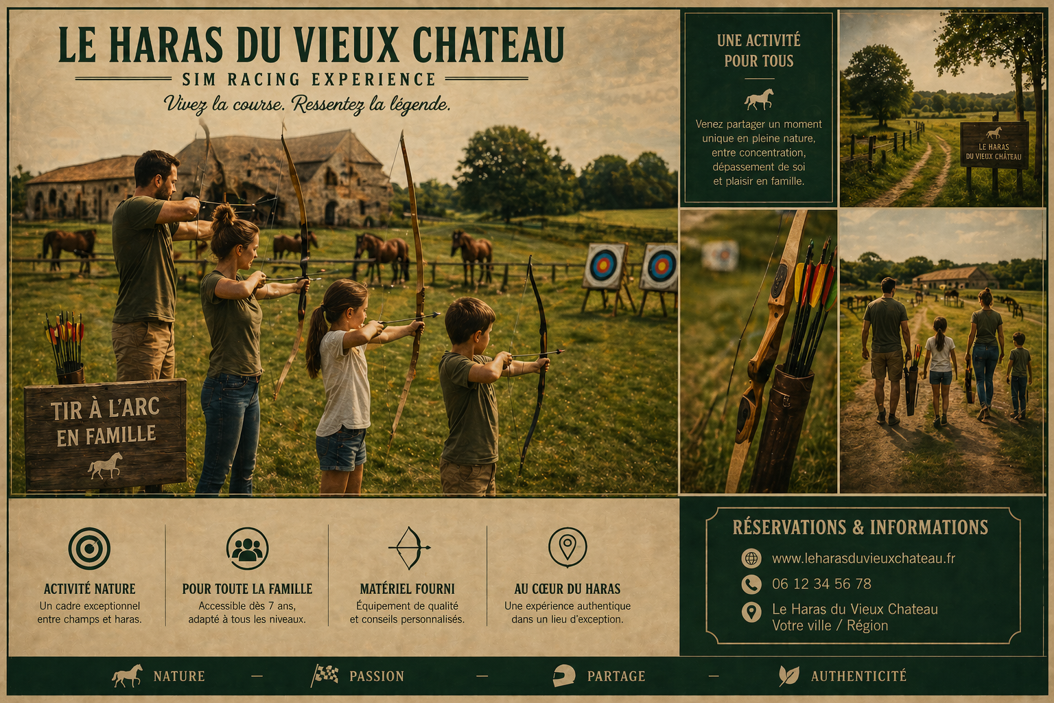 Du frisson du simracing aux balades nature en fatbike, en passant par le tir à l'arc et les douceurs de la piscine ou du bain nordique — le Haras du Vieux Château vous propose des activités pour tous les goûts.